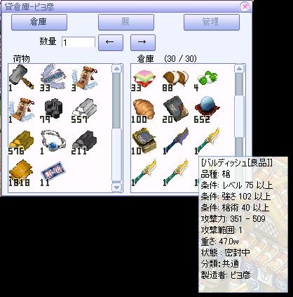 どうも(*´∀`)ノ サブでエンチャ用の武器を作ってたところ。。。 私が作ったと同時に[良品]が出来たそうですw ・・・ ・・・ ・・・ って俺だ!? うわーっ!超嬉しいって!こんなことあるもんやねぇ~♪ 次はエンチャ地獄、先は長いなぁ。。。 後、オークに出すもので悩んでます((つД`) 絹糸1000コとか、旧鉄拳水E7とか、食材系とか、悩みます。。。 またね~ヾ(≧◇≦)